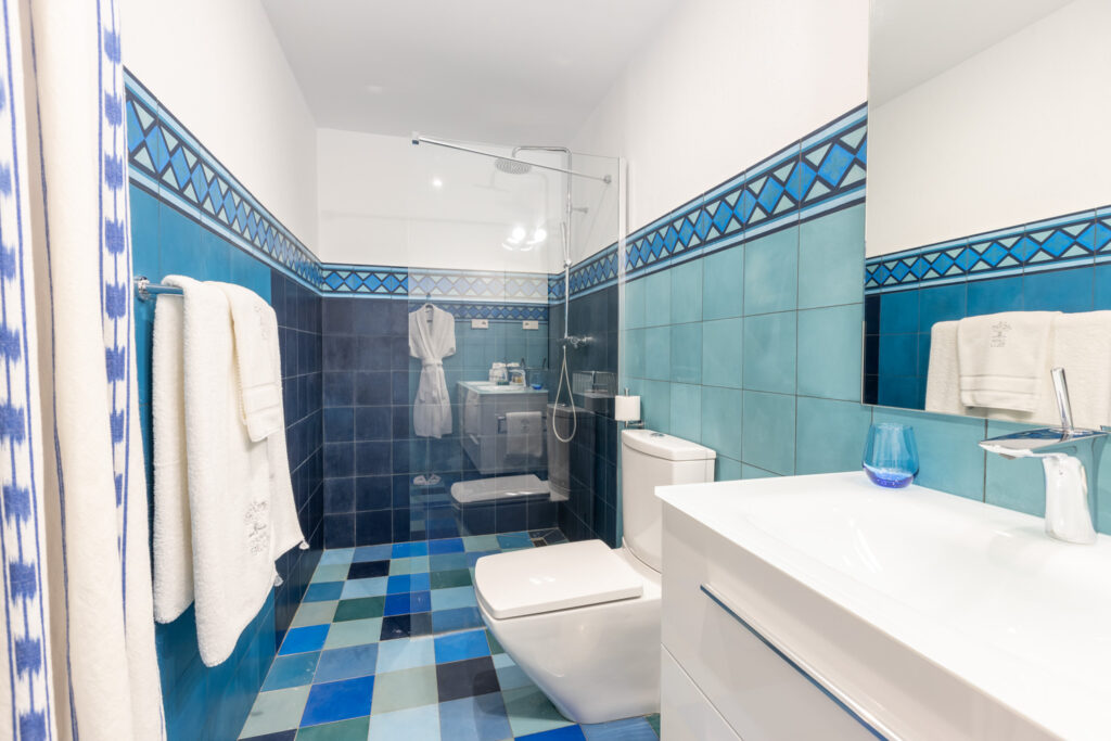 Step into the enchanting embrace of Aguamarina Nocturna, where its tranquil hues evoke the timeless allure of Andalusia’s nocturnal serenity and the room’s refreshing ambiance and spacious shower are perfect for balmy summer nights. Inspired by the moon-kissed waters that grace Andalusia’s shores, this room offers a sanctuary of quiet reflection beneath the gentle gaze of the evening stars where the wall adorned with lanterns offers a mesmerizing view from the flexibility of your Hästens bed, which can be separated into two, casting a warm glow across the room. Here, amidst the soft murmur of the night and the gentle play of moonlight on the waves, guests are invited to lose themselves in the ethereal beauty of Andalusia’s nocturnal embrace.
